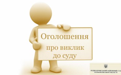 На вказане число просимо з'явитися в приміщення Підволочиського районного суду (смт. Підволочиськ вул. Залізнична, 1 Тернопільської області) відповідача: Данилюка Романа Ярославовича – 17 березня 1981 року народження, останнє відоме місце проживання -